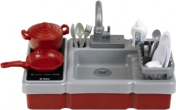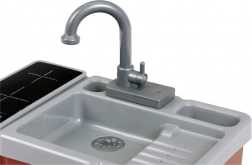 Tento propracovaný set umožní dětem bezpečně napodobovat každodenní kuchyňské činnosti. Díky funkčnímu kohoutku s cirkulací vody a dotykové indukční desce se světlem a zvukem je hra maximálně realistická a zábavná. Nechybí odkapávač, místo na „jar“ a bohatá sada příslušenství pro servírování i vaření.