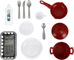 - Bohaté příslušenství: 12 kusů nádobí, příborů a lahvička na „saponát“.