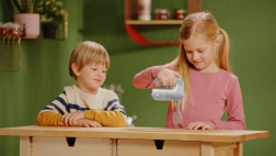 Dopřejte dětem zábavu jako v opravdové kuchyni. Licencovaný mixér BOSCH ve stříbrném provedení věrně napodobuje skutečný spotřebič: po stisknutí tlačítka se metly otáčejí a posuvný přepínač imituje nastavení rychlosti. Díky odnímatelným nástavcům si děti osvojí i návyky péče o pořádek.