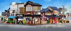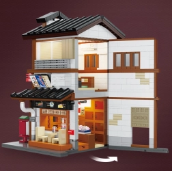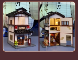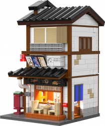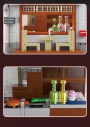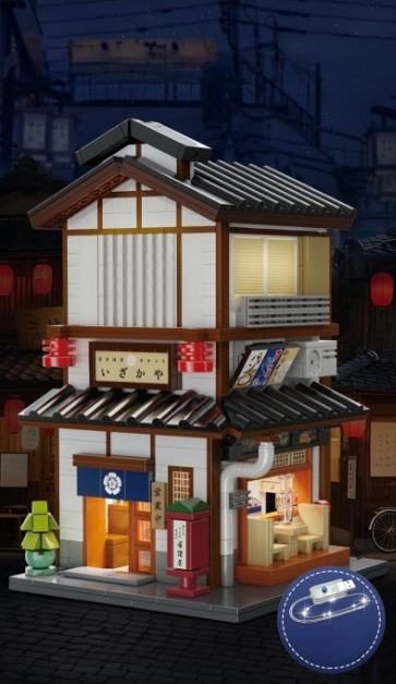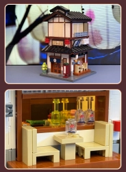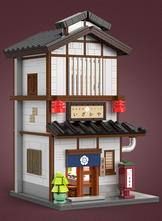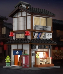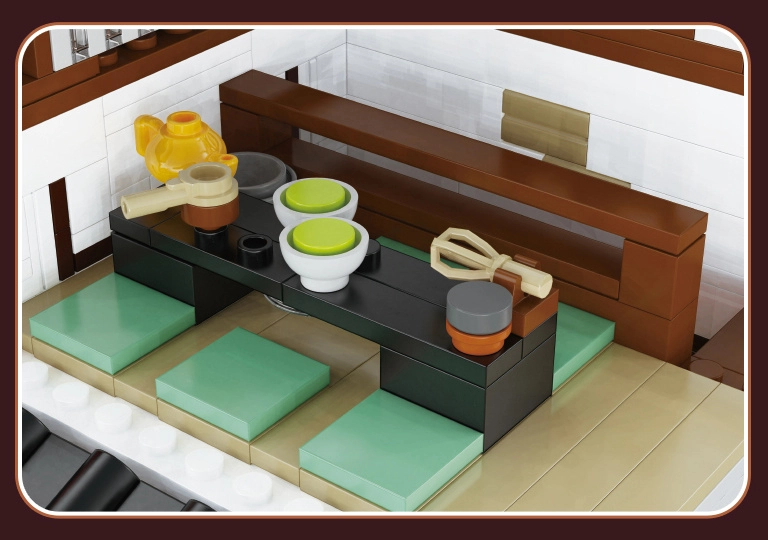 V přízemí vás čeká útulná místnost s pultem a grilem, v patře pak komorní čajový pokoj. Posuvné dveře a bohaté příslušenství (jídlo, čajová sada) dělají z modelu skvělý výstavní kus i zábavný projekt pro stavitele od 14 let. LED světla s efekty podtrhnou atmosféru a večer model doslova ožije.