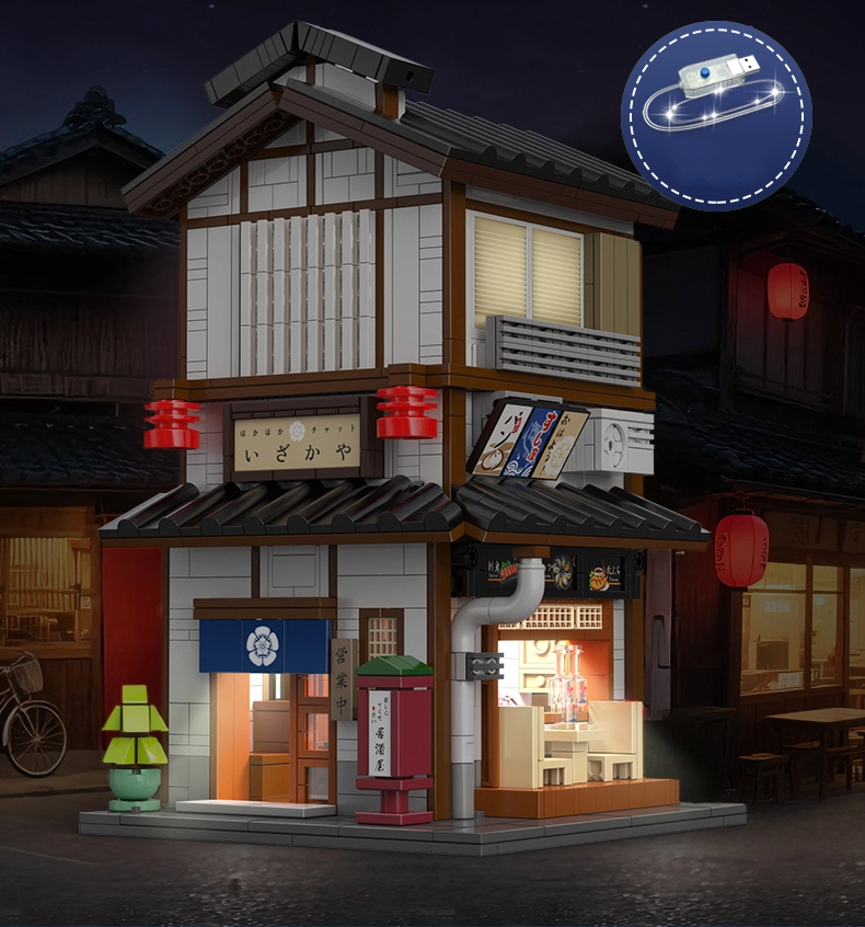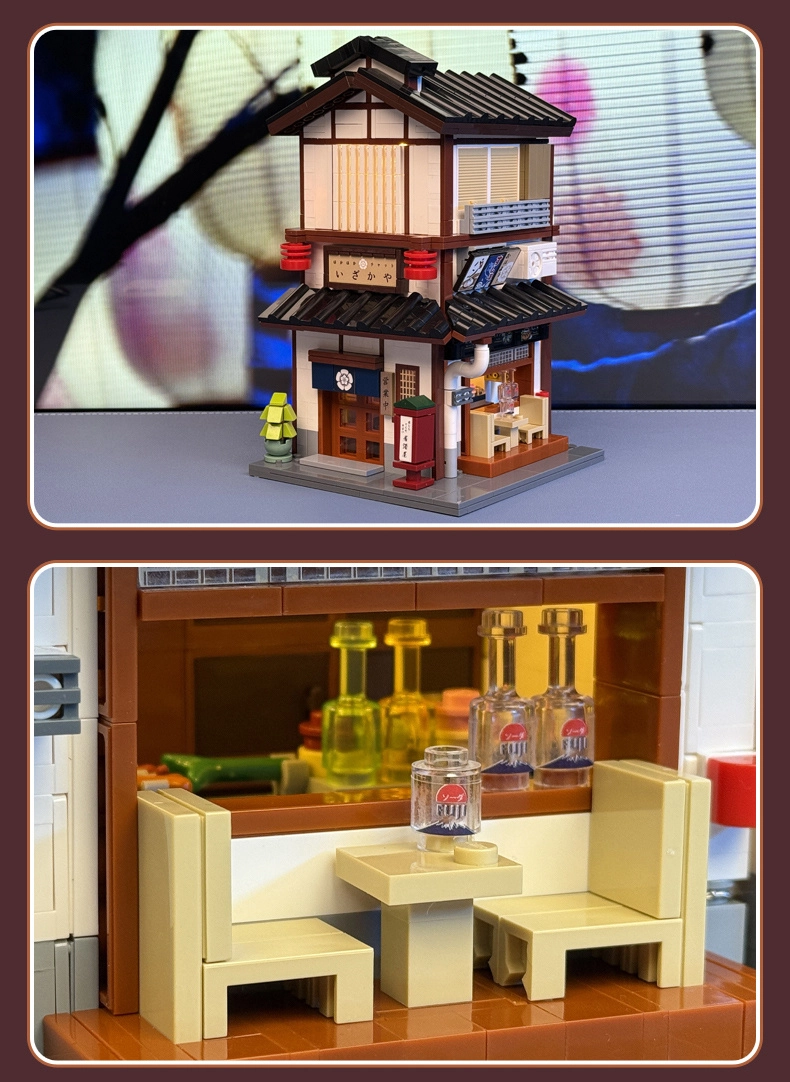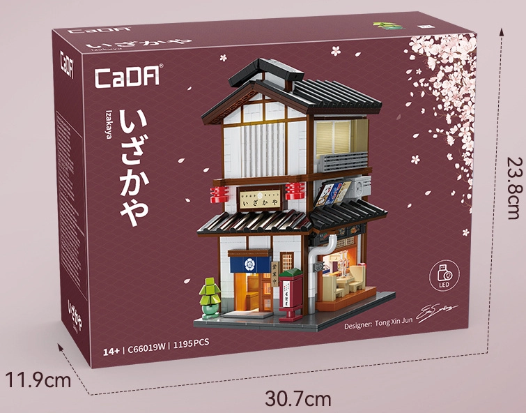 Objevte kouzlo tradiční japonské architektury v jedinečné stavebnici CaDA. Realistické papírové lampiony, dřevěné detaily, bar a propracované prvky interiéru vytvářejí nezaměnitelnou atmosféru. Díky otevírací boční stěně snadno nahlédnete dovnitř, aniž byste museli model rozebírat.