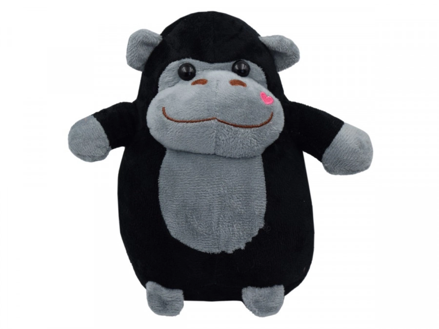 Roztomilá plyšová gorila Afro o výšce 20 cm potěší každého milovníka zvířátek. Vyberte si z hnědé nebo černé varianty. Hračku zdobí milý úsměv, jemné chloupky a srdíčka na tvářičkách. Je ideální na mazlení, hraní i jako dárek pro děti od 3 let.