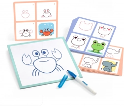 Zábavná kreativní sada pro děti, díky které se naučí kreslit roztomilá zvířecí mláďátka krok za krokem. Šablony vedou děti každým tahem, smazatelný fix umožní zkoušet znovu a znovu a rozvíjí jemnou motoriku i kreativitu.