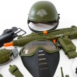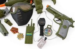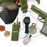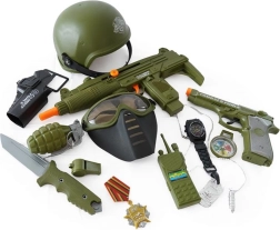 Tato dětská vojenská výbava nabízí vše potřebné pro napínavé mise: ochrannou helmu, pistoli a další doplňky, které umocní zážitek z hraní. Díky realistickému vzhledu a snadné manipulaci je sada skvělou volbou pro vnitřní i venkovní hry.