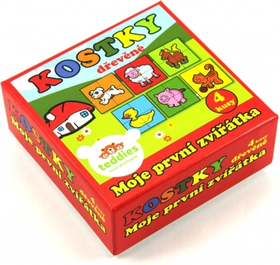 dřevěné obrázkové kostky moje první zvířátka 4 ks TEDDIES