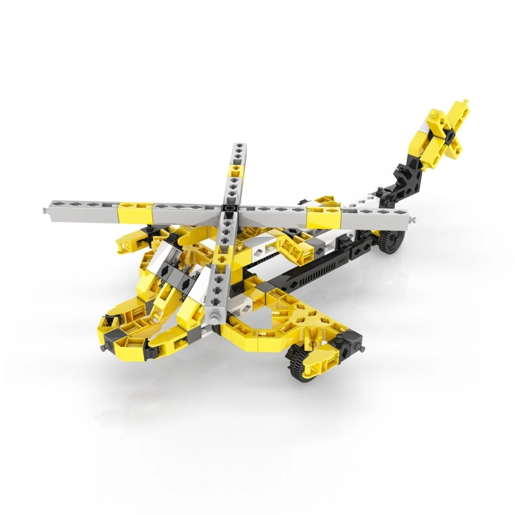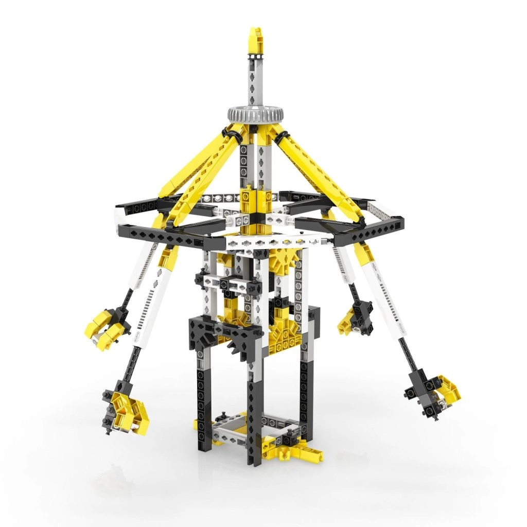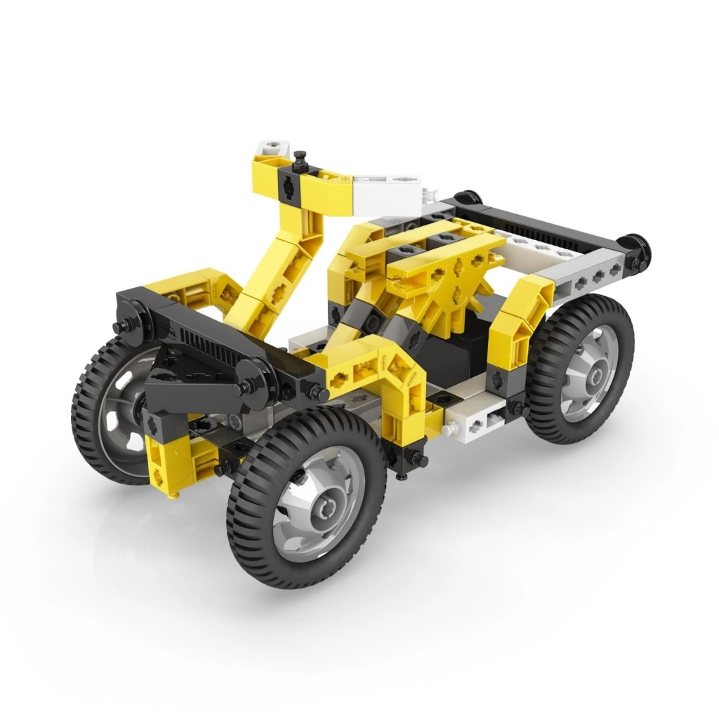 Tato univerzální stavebnice přináší dětem zábavu i vzdělání v jednom. Z jednoho setu dílků postavíte auta, vrtulníky, jeřáby, stroje i mechanické mechanismy. Integrovaný motor na 2× AAA baterie (nejsou součástí) dodá modelům pohyb a učí děti základům mechaniky.