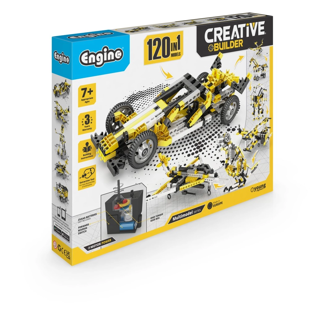 Objevte neomezené možnosti s kreativní stavebnicí Engino Creative Builder, která umožňuje sestavit až 120 modelů v 1. Díky motorku s přepínačem směru, 3D návodům v aplikaci kidCAD a kompatibilitě s dalšími sety ENGINO rozvíjí logické myšlení, kreativitu a technické dovednosti dětí od 7 let.
