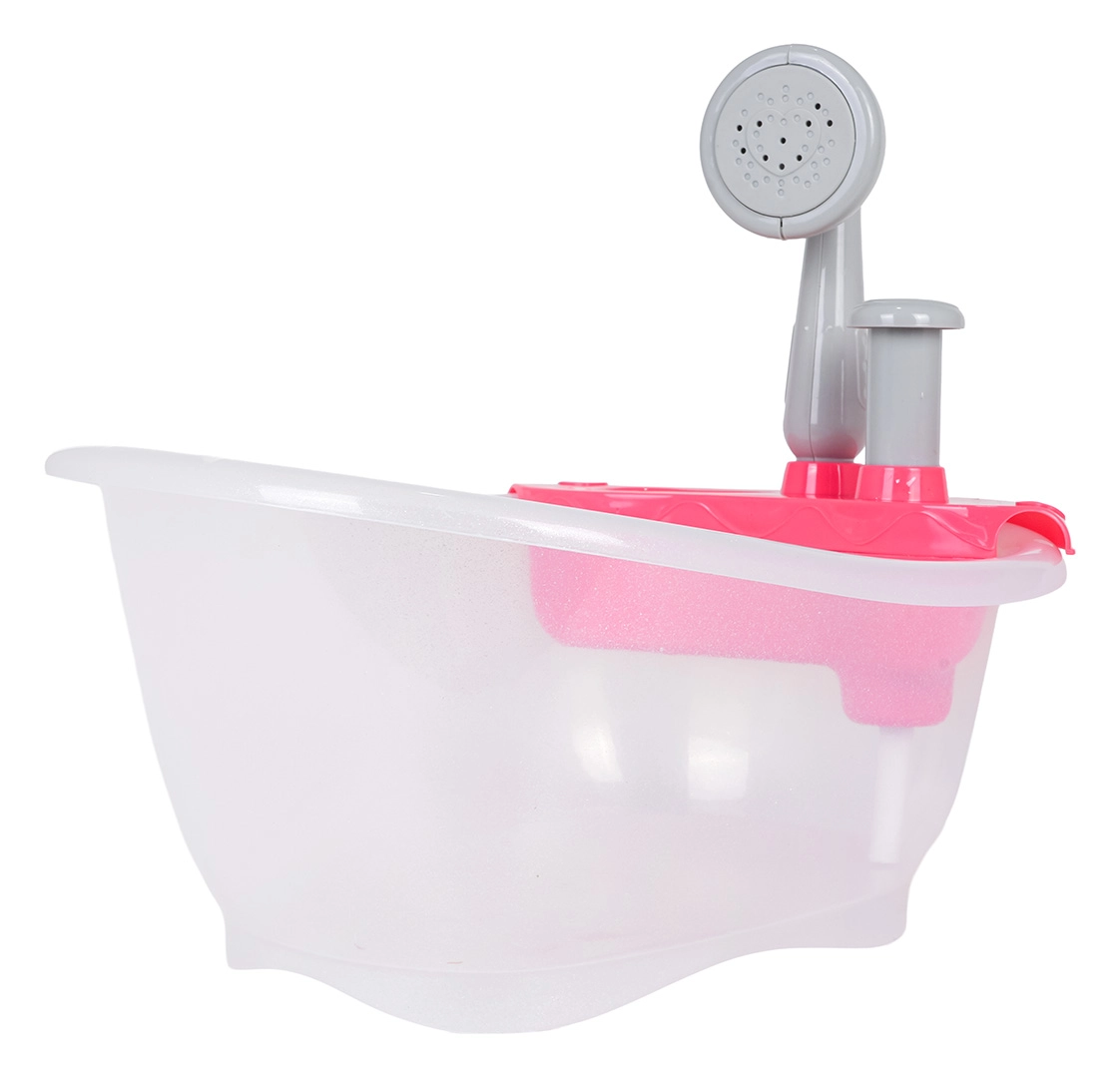 Roztomilá vanička pro panenky se sprchou potěší děti od 3 let. Po naplnění vodou a stisknutí pumpičky ze sprchy skutečně teče voda. Zestaw je vyroben z bezpečných a kvalitních materiálů, ideální jako dárek pro malé pečovatelky.