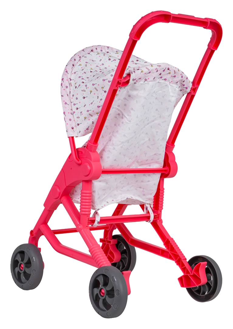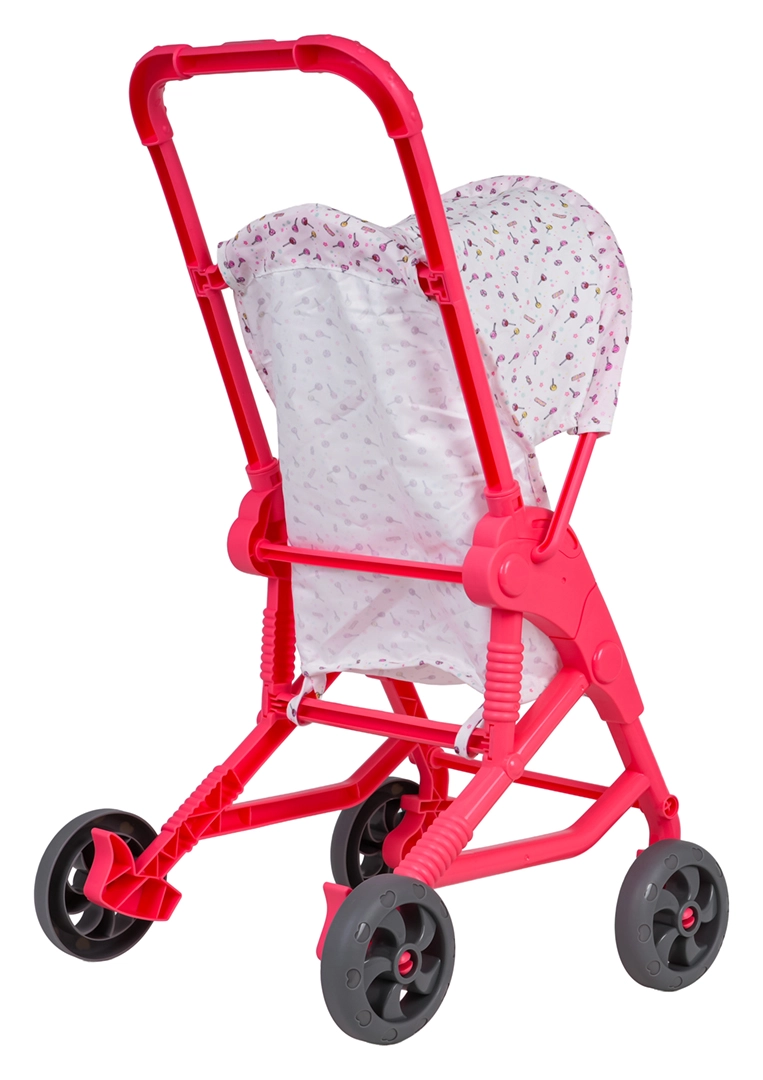 Textilní sedák a stříška drží panenku bezpečně na místě a kočárek se snadno ukládá díky kompaktnímu rámu.