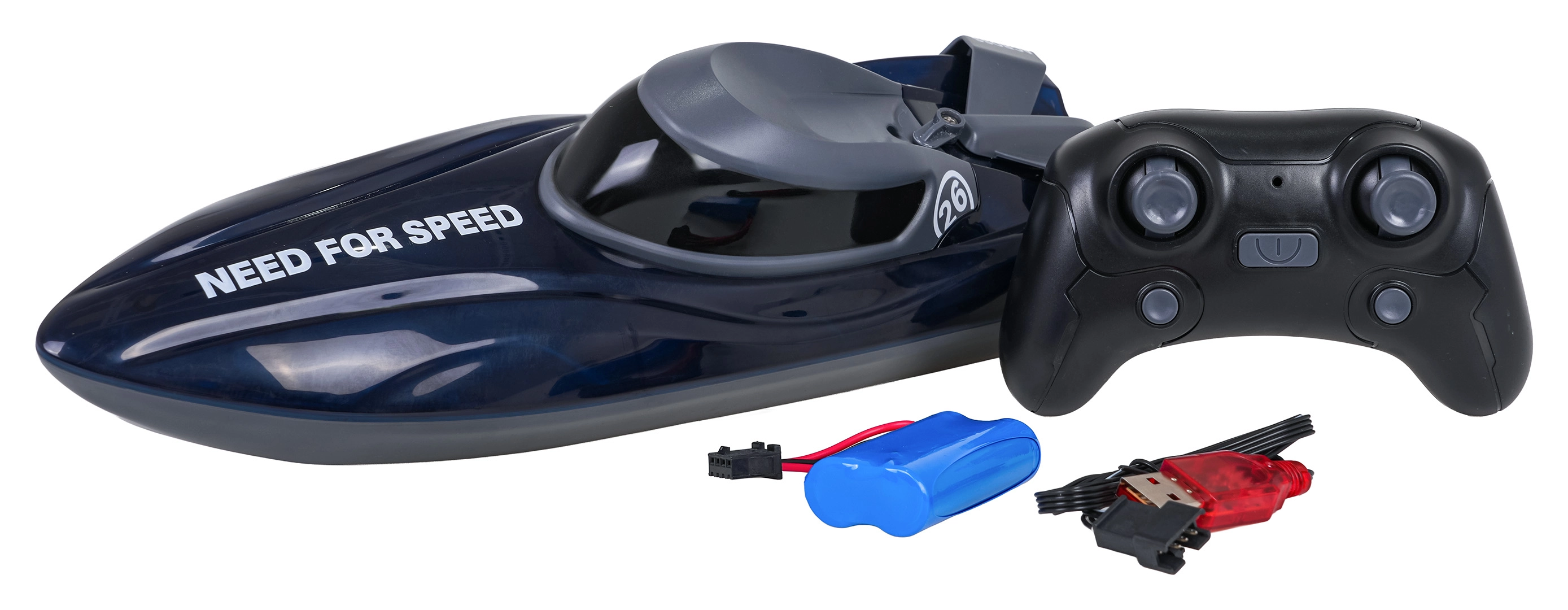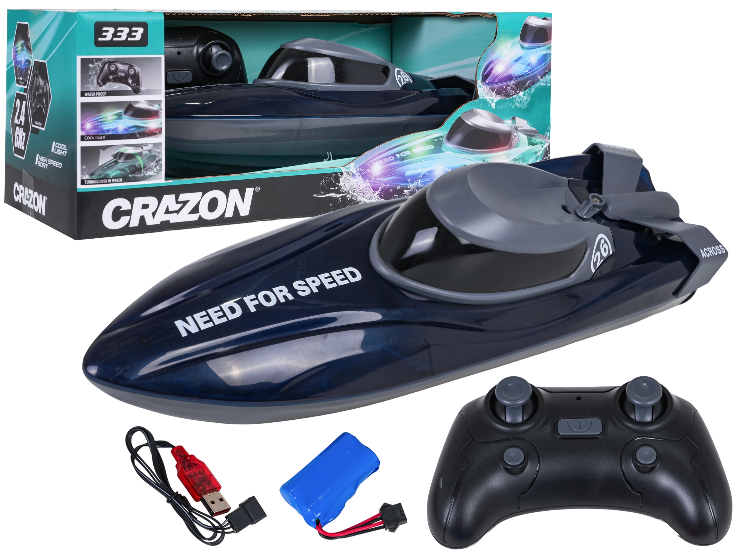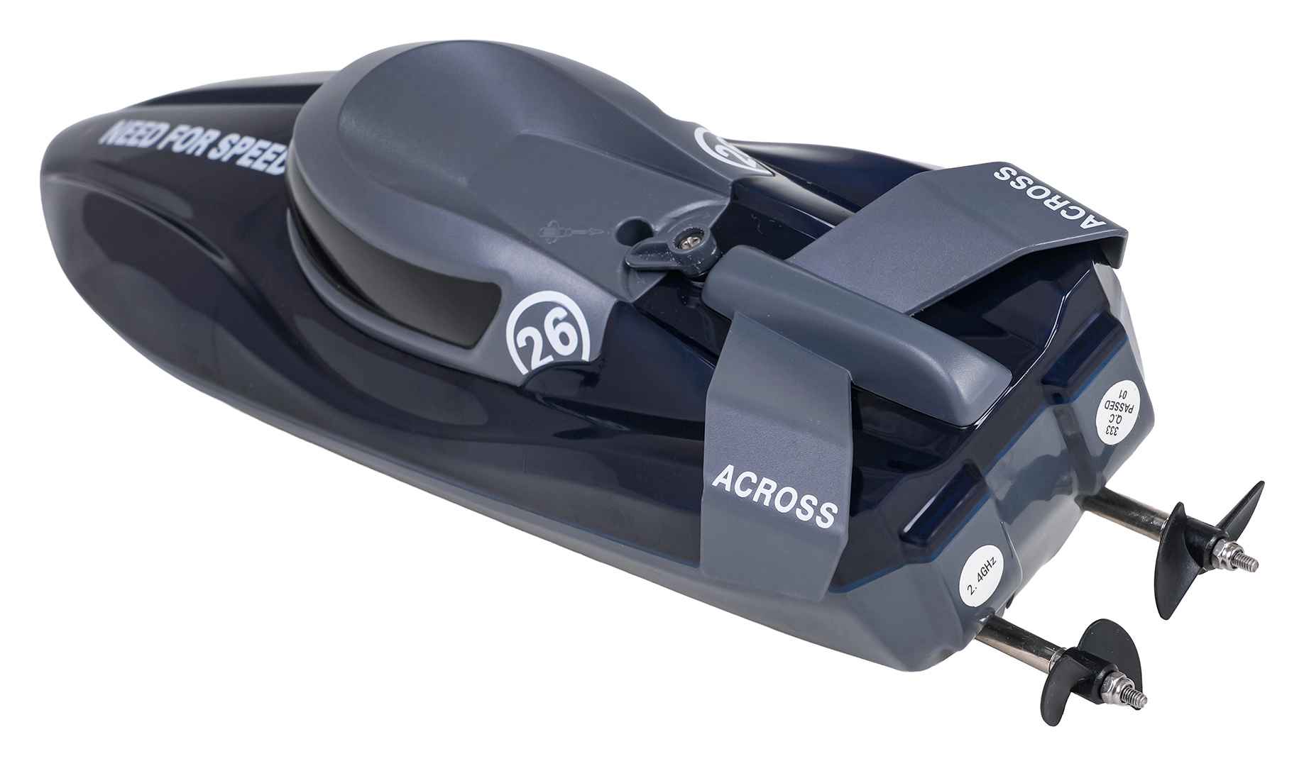 Osvětlený trup zvyšuje viditelnost a dodává jízdě atraktivní vzhled při soumraku. Dosah ovládání cca 30 m, doba provozu až 20 minut na akumulátor 7,4 V a USB nabíjení (cca 3 hodiny) dělají z tohoto člunu ideální hračku k bazénu i na klidnou vodní plochu.