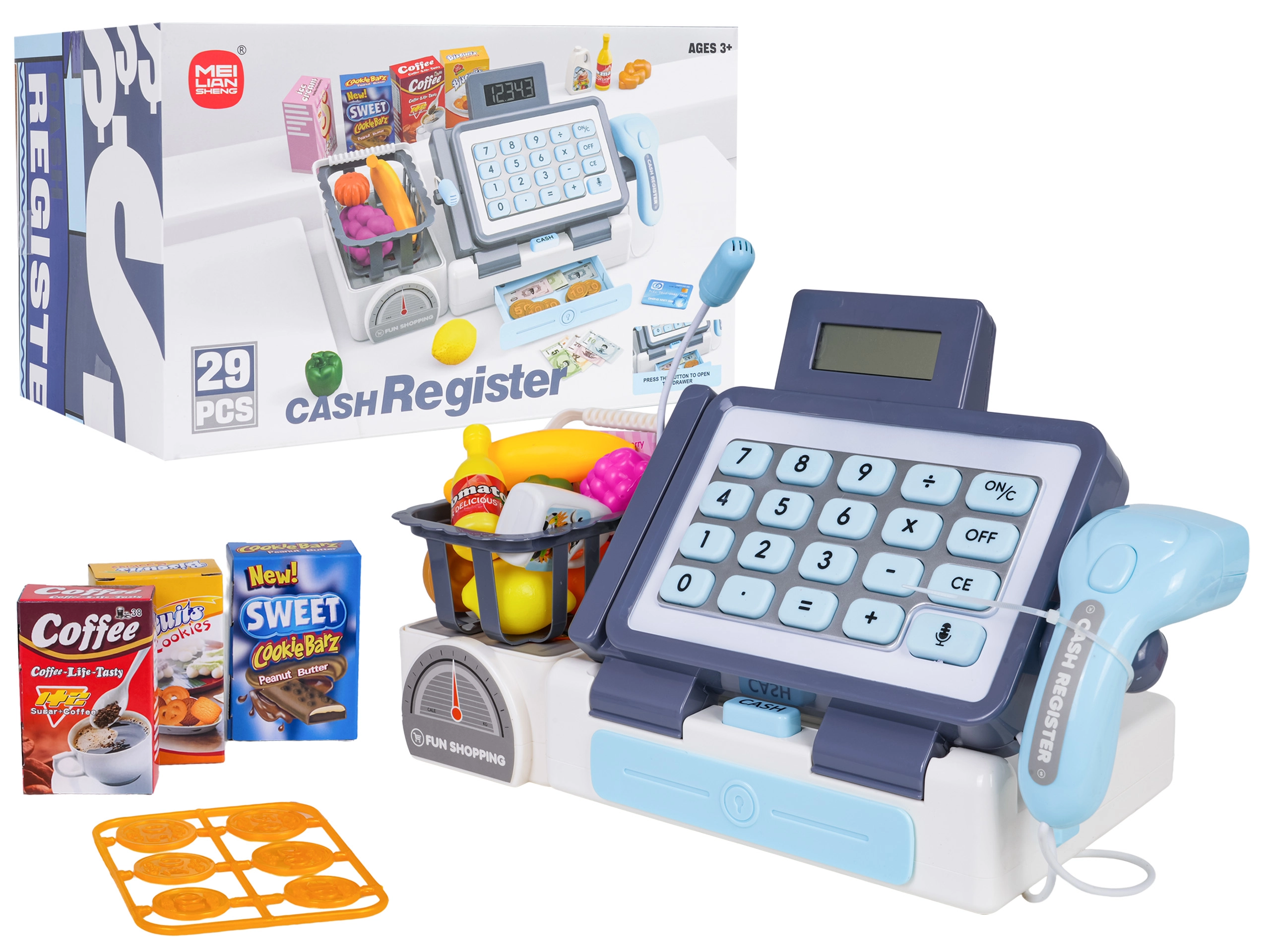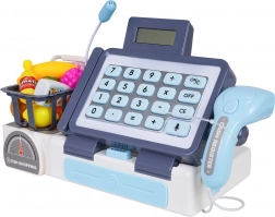 Interaktivní dětská pokladna s bohatým příslušenstvím přináší zábavné hraní na obchod pro děti od 3 let. Obsahuje funkční kalkulačku, ruční skener se světlem a zvukem, mikrofon, váhu, otevírací šuplík na peníze a nákupní košík s potravinami. Ideální pro rozvoj představivosti, počítání a role-play.