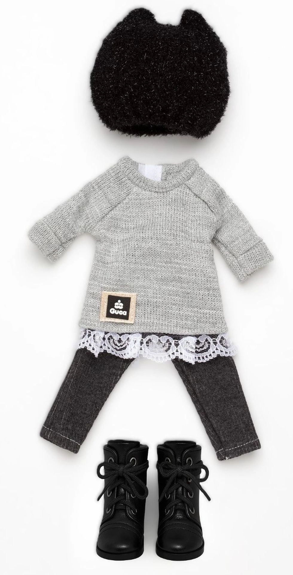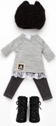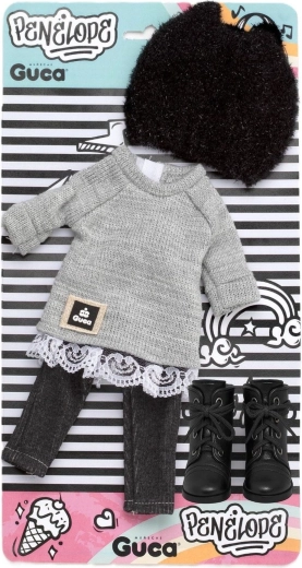 Tři sladěné kousky oblečení doplněné botičkami vytvoří okamžitě hotový look pro panenku PENELOPE ve velikosti 34 cm.