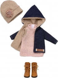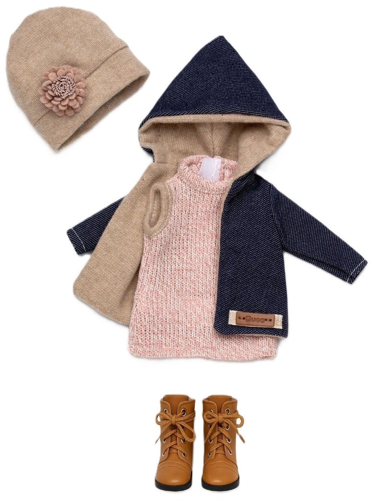 Kabátek s kapucí a pletené detaily udrží panenku v teple, zatímco botky dodají celku realistický nádech.