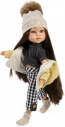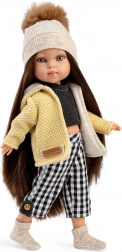 Obohaťte šatník své panenky Penelope o pečlivě sladěnou 5dílnou kolekci, která kombinuje moderní vzor kostky s hřejivými pleteninami. Set zahrnuje žlutou kapucovou bundičku s měkkou podšívkou, pletenou čepici s bambulí, černé tričko, kostkované kalhoty s knoflíkovými detaily a pletené ponožky/návleky. Vše je navrženo tak, aby šlo snadno oblékat i svlékat.