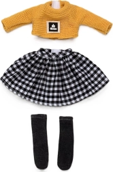 Dopřejte své panence Penelope ve velikosti 34 cm nový, nadčasový outfit. Set kombinuje hřejivý pletený svetr v hořčicové barvě, šik černobílou kostkovanou sukni s pružným pasem a tmavé podkolenky. Díky kvalitním materiálům a pečlivému zpracování se oblečky snadno oblékají a drží tvar.
