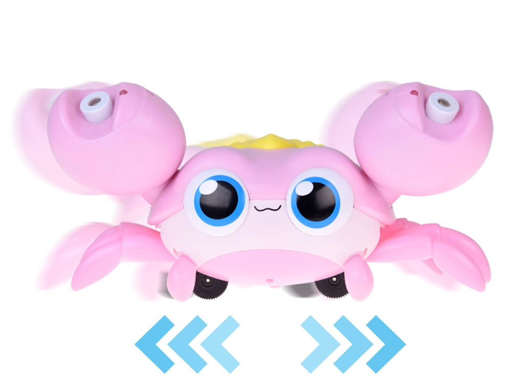 Krab se pohybuje na malých kolečkách a z klepet vypouští proud jemných bublinek – perfektní pro zahradu, balkon i dětské oslavy.
