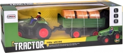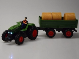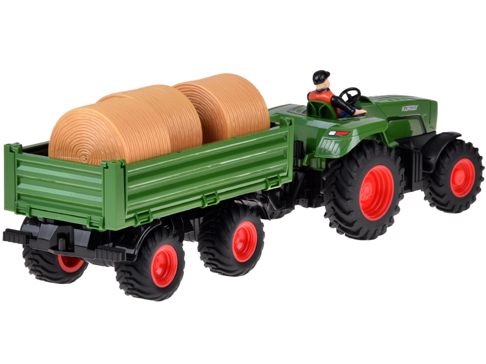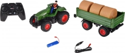 - Traktor, přívěs, figurka řidiče, 3× balík sena, akumulátor 3,7 V, USB nabíjecí kabel, dálkový ovladač