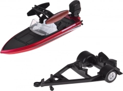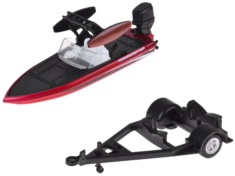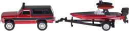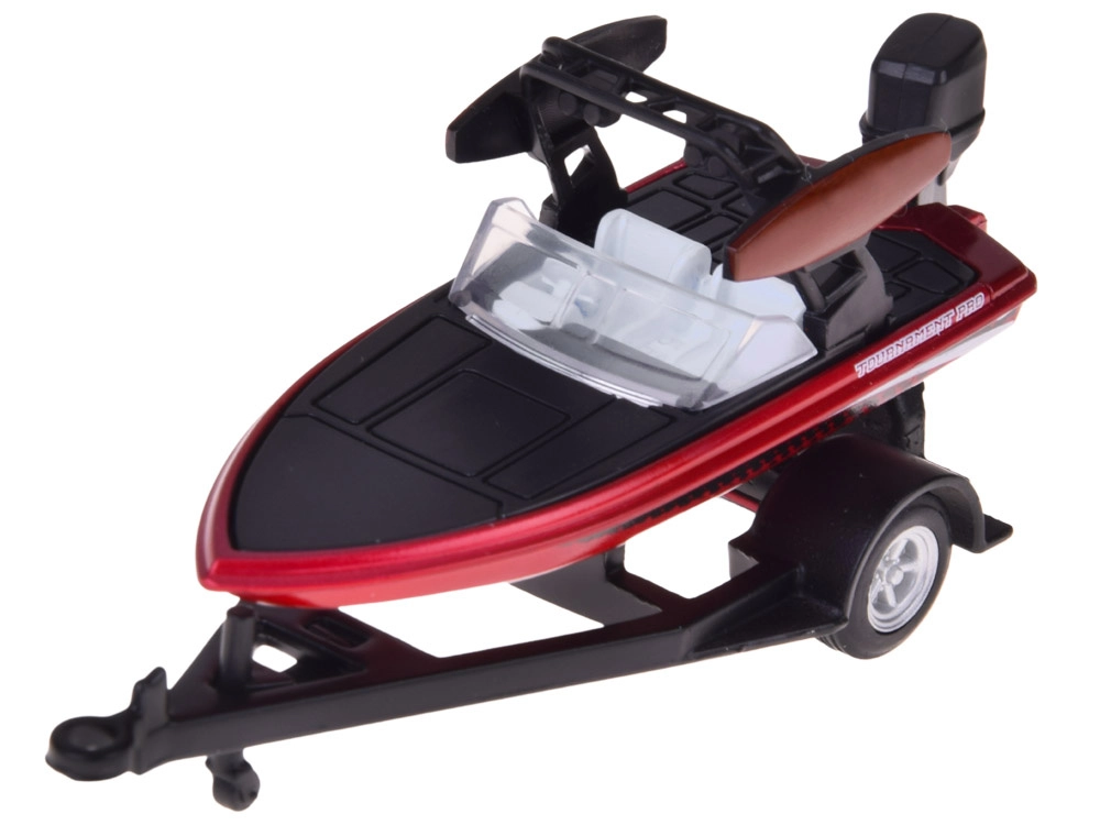 Model nabízí funkční tažné zařízení s možností odpojení přívěsu, realisticky zpracovaný člun s venkovním motorem a hladce rotující kola pro plynulou jízdu. Skvěle vypadá ve vitríně a zároveň vydrží každodenní hraní.