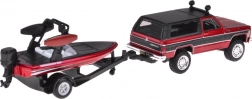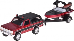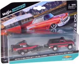 Tato licencovaná sada od Maisto kombinuje klasický CHEVROLET K5 BLAZER 1979 v červeno‑černém provedení s přívěsem a elegantním motorovým člunem. Kovová karoserie, přesné proporce a autentické detaily karoserie i interiéru potěší každého fanouška americké klasiky.