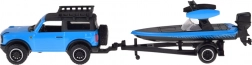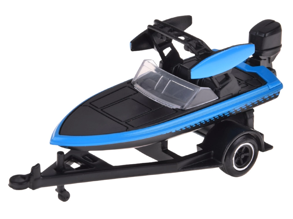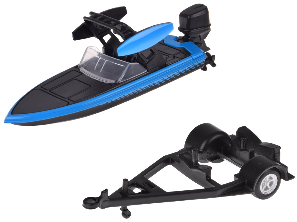 Díky realistické moldáži, detailům jako je tažné zařízení, střešní nosič a venkovní motor člunu působí set věrně a je ideální jak na hraní, tak na vystavení do vitríny. Modrá barevná kombinace dodává modelu moderní a dynamický charakter.