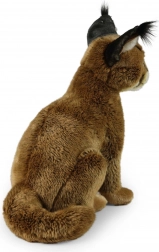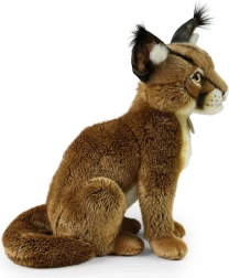 Tuftované ušní štětiny, jemná výšivka obličeje a přirozené zbarvení dodávají karakalovi autentický vzhled, který potěší děti i sběratele.