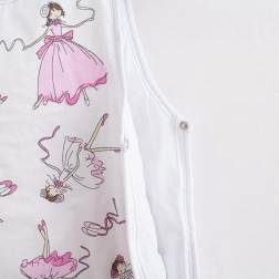 Jemný a pohodlný spací pytel pro miminka od narození s potiskem baletky. Poskytuje příjemné teplo, měkkost a snadné oblékání díky cvočkům na ramínkách a zipu po celé délce. Vyroben z 100% bavlny s polyetserovou výplní pro maximální komfort.