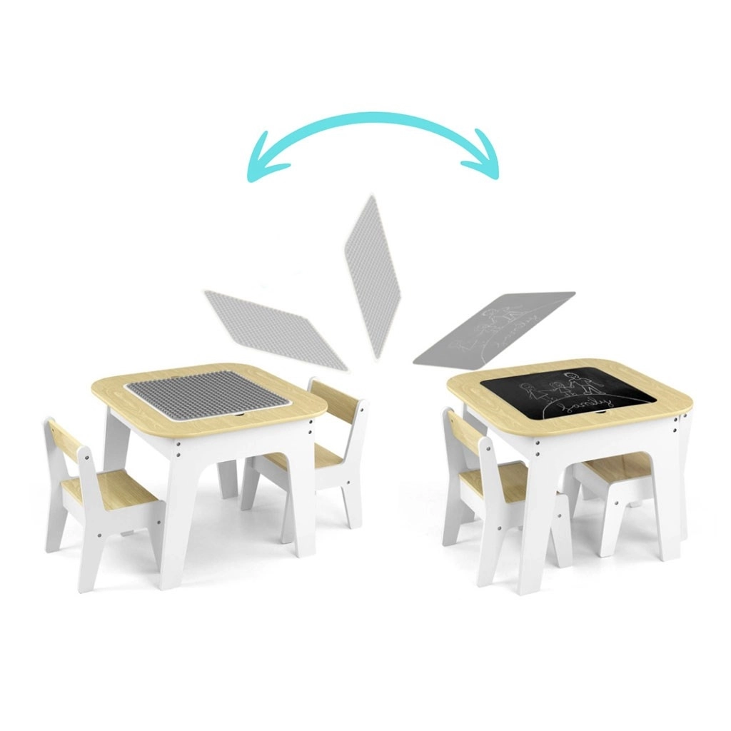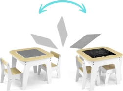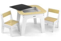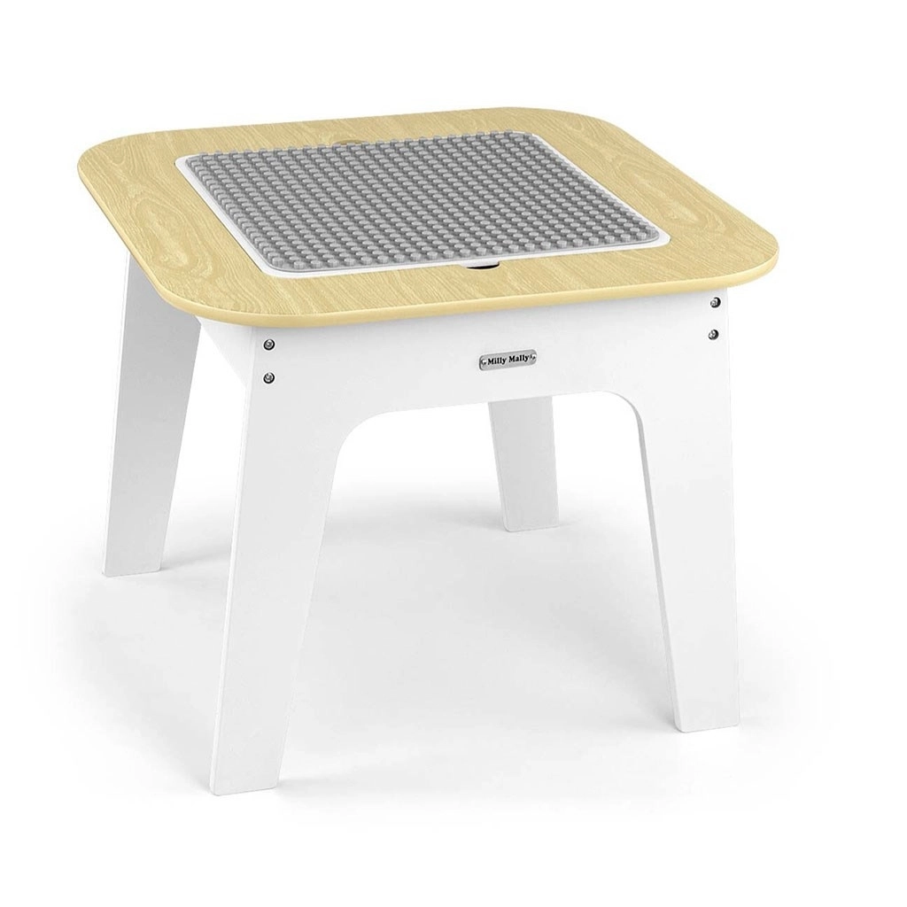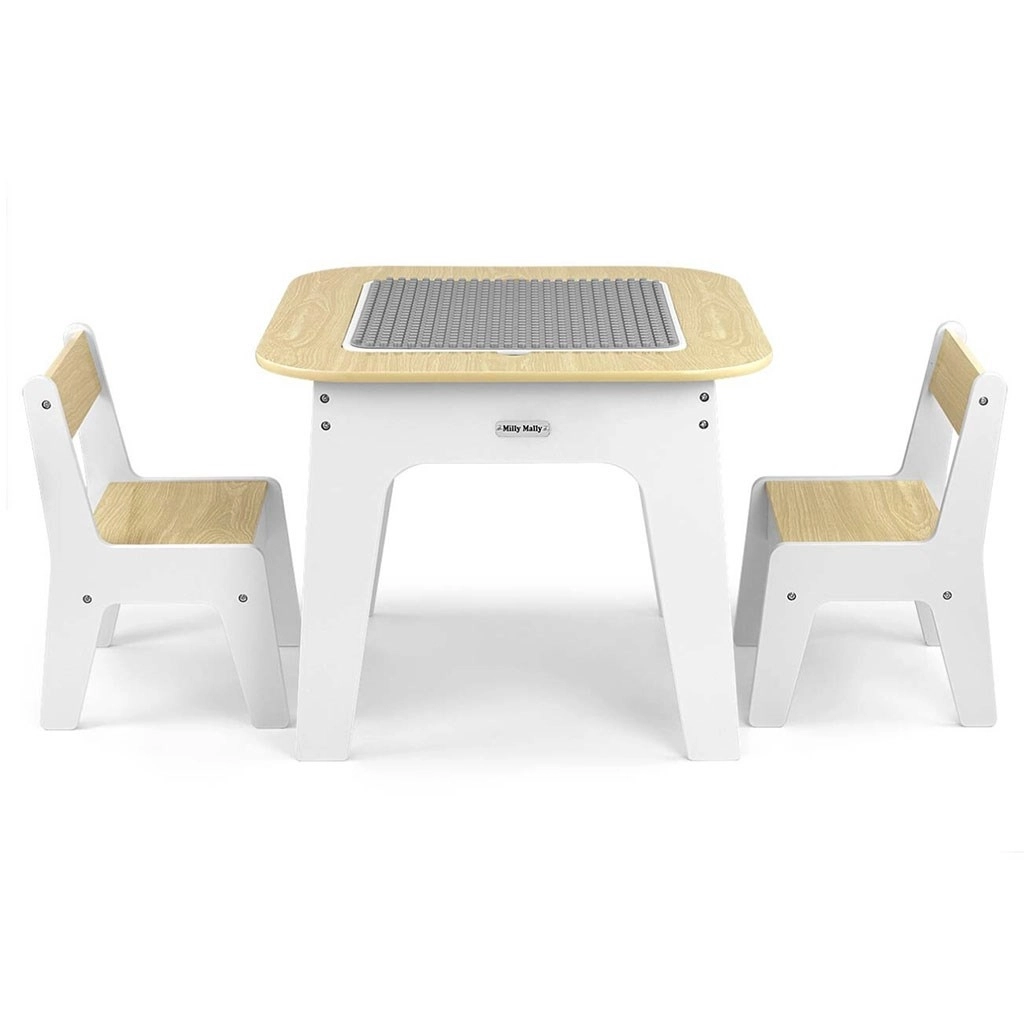 Praktická dětská sestava MILLY MALLY Olaf Blocks – stůl a dvě židle – nabízí oboustrannou desku pro stavební kostky i kreslení, velký úložný prostor pod deskou a bezpečnou, zaoblenou konstrukci z odolné MDF. Ideální pro děti od 3 do 6 let do dětského pokoje i herního koutku.