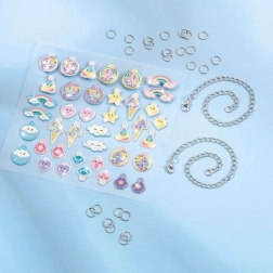 • Vše v jednom – 2 řetízkové náramky, 24 kovových kroužků a 40 puffy samolepek s třpytkami.
