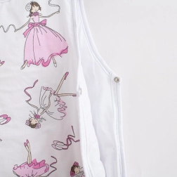 Pohodlný dětský spací vak New Baby Ballerina Bella pro miminka od 6 do 12 měsíců zajistí příjemné teplo a klidný spánek. Je vyroben z jemné bavlny s měkkou polyesterovou výplní a zdobí jej roztomilý motiv baletky. Praktické zapínání na patentky na ramínkách a postranní zip po celé délce usnadňují převlékání i přebalování.