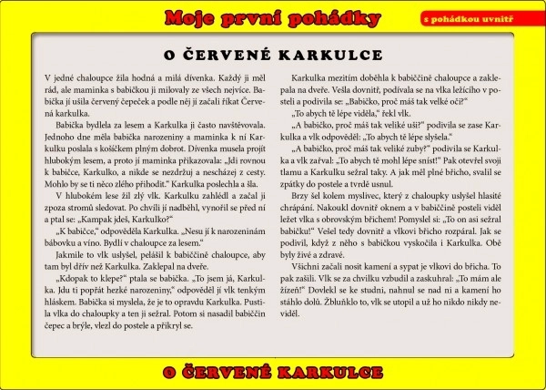 Puzzle O Červené Karkulce nabízí jedinečný herní zážitek pro děti od 3 let. Po sestavení dílků objeví děti pod obrázkem text tradiční české pohádky. Tento design přispívá k rozvoji jemné motoriky a tvořivého myšlení.