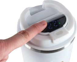 Hrnek je vhodný pro horké i studené nápoje a díky kompaktním rozměrům se vejde do většiny držáků v autě i do batohu. Integrovaná baterie CR2032 napájí LED displej, takže máte přesnou kontrolu teploty kdykoli po ruce.