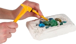 Tento zábavný STEM set přináší autentický zážitek z vykopávek. Děti postupně odsekávají sádrový blok a jemně štětečkem odkrývají barevné kameny a mušličky. Součástí je vše, co potřebují – bezpečné plastové nástroje a přehledný návod.