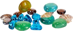 - Barevné kameny a mušličky: hladké, lesklé a různých velikostí pro skvělé „wow“ odhalení.
