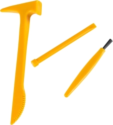 Lehké plastové nástroje sednou do dětské ruky a umožní pohodlné a bezpečné odsekávání a čištění nálezů.
