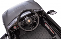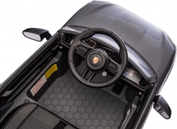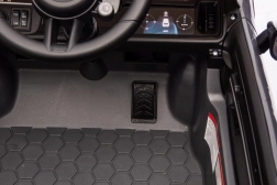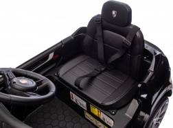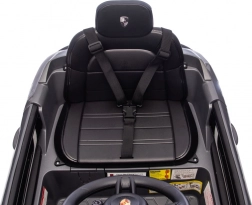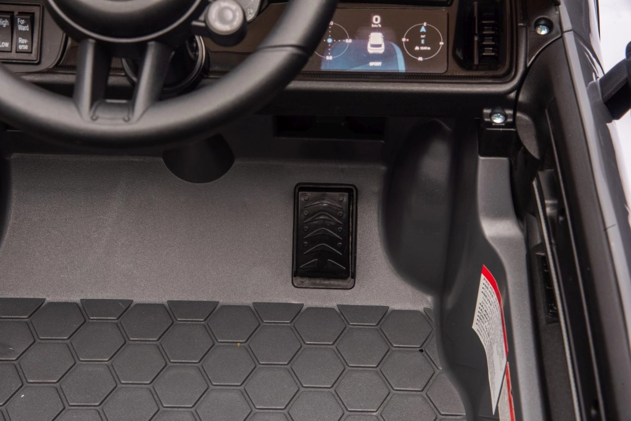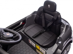 Měkké sedadlo z černé ekokůže s bezpečnostními pásy, otevírací dveře a realistické detaily karoserie. EVA kola a odpružení vpředu i vzadu tlumí nerovnosti.