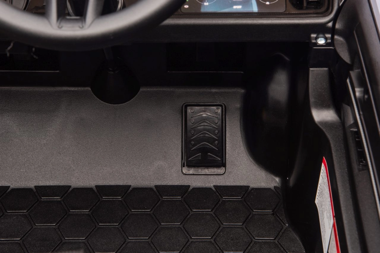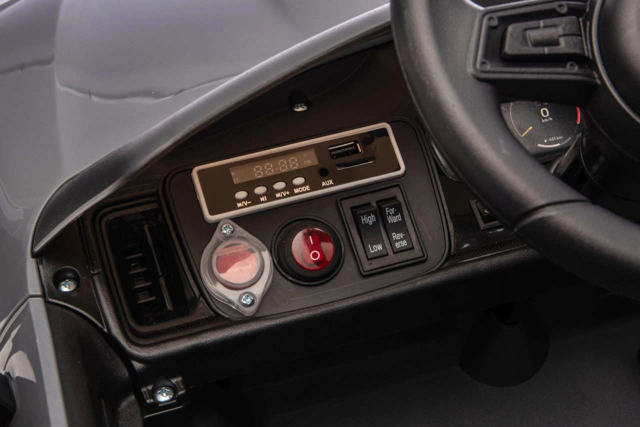 Rodiče ocení bezpečné dálkové ovládání 2,4 GHz se třemi rychlostmi a nouzovým tlačítkem Stop. Děti si užijí světelné efekty LED a bohatou výbavu audio panelu: MP3, Bluetooth, FM rádio, přednahrané melodie i klakson na volantu.