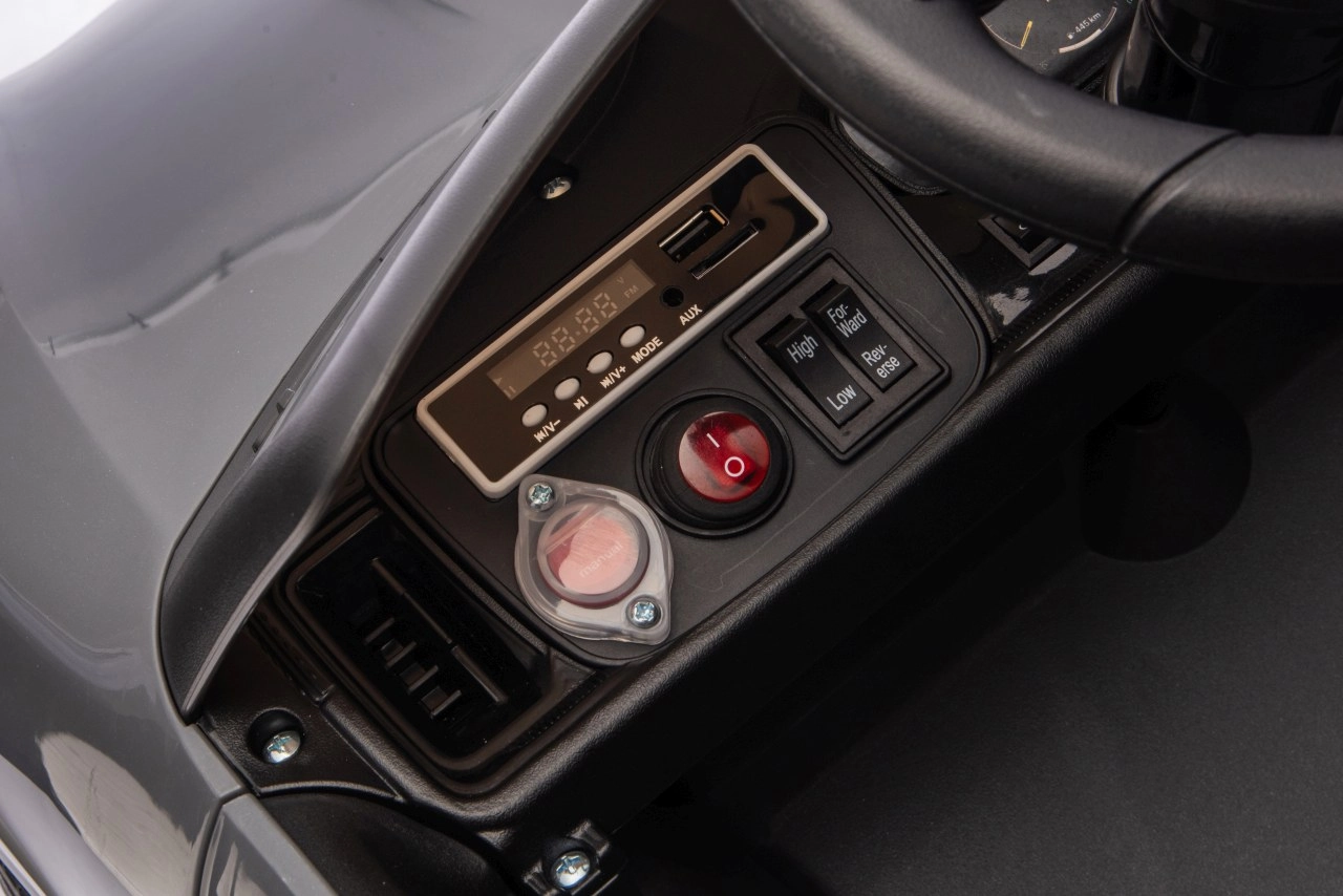 Audio panel s MP3, Bluetooth a FM rádiem, přednahrané melodie a klakson na volantu. Přední LED světla a samostatný vypínač světel podtrhují atmosféru jízdy.