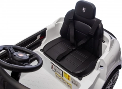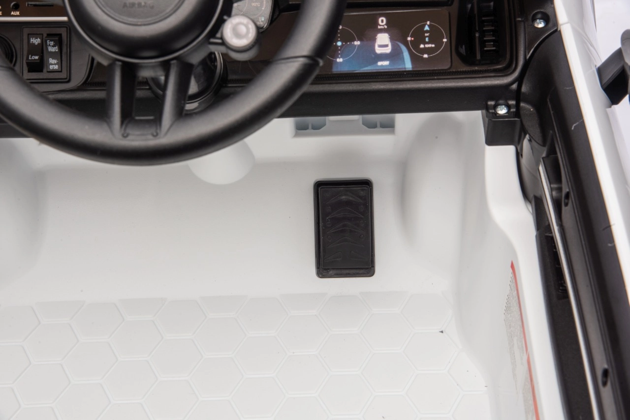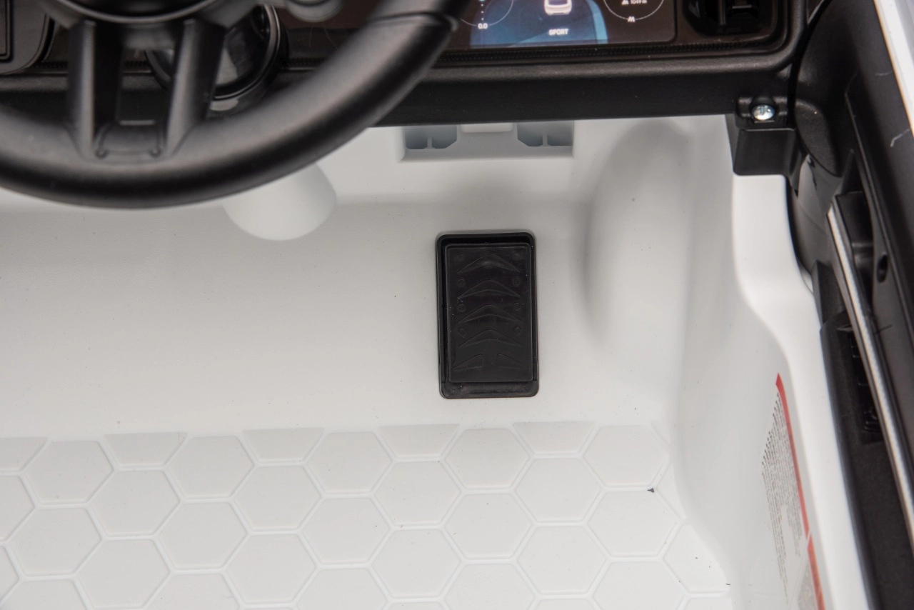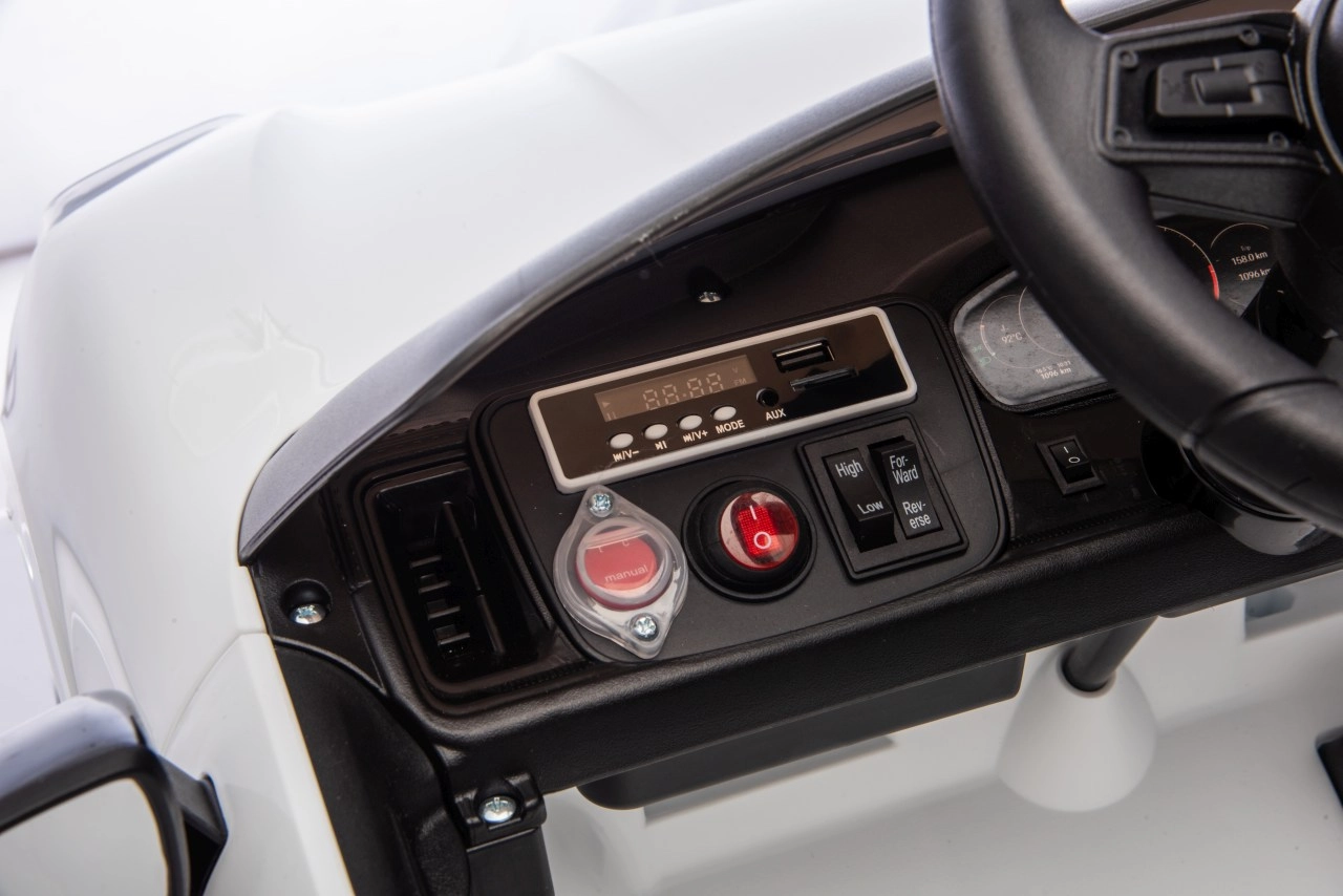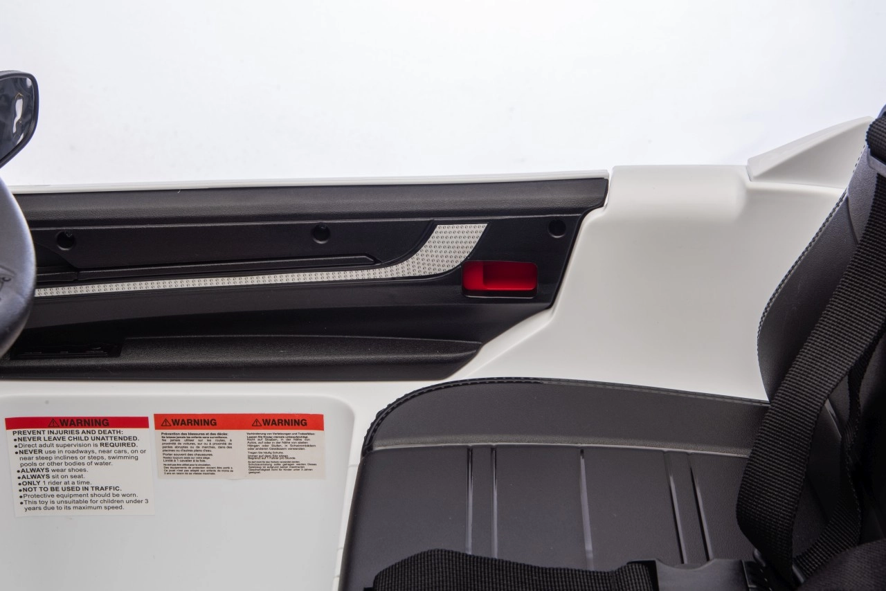 Pro maximální bezpečí rodičů i dětí nechybí dálkový ovladač 2,4 GHz se třemi rychlostmi a nouzovým tlačítkem Stop. Interiér potěší černým sedadlem z ekokůže s pásem, funkčním panelem s MP3/Bluetooth/FM a tlačítky klaksonu a zvuků na volantu. Otevírací dveře, LED světla a kvalitní zpracování podporují atraktivní vzhled i každodenní zábavu.