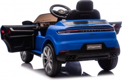 Modré dětské elektrické auto ve stylu PORSCHE Cayenne kombinuje sportovní design a skvělé jízdní vlastnosti. Dva silné motory 2×45 W napájené baterií 12 V 7 Ah poskytují plynulý rozjezd a dvě rychlosti vpřed i vzad. O komfort se starají měkká EVA kola a tlumiče na přední i zadní nápravě, takže jízda je tichá a pohodlná i na horším povrchu.