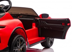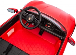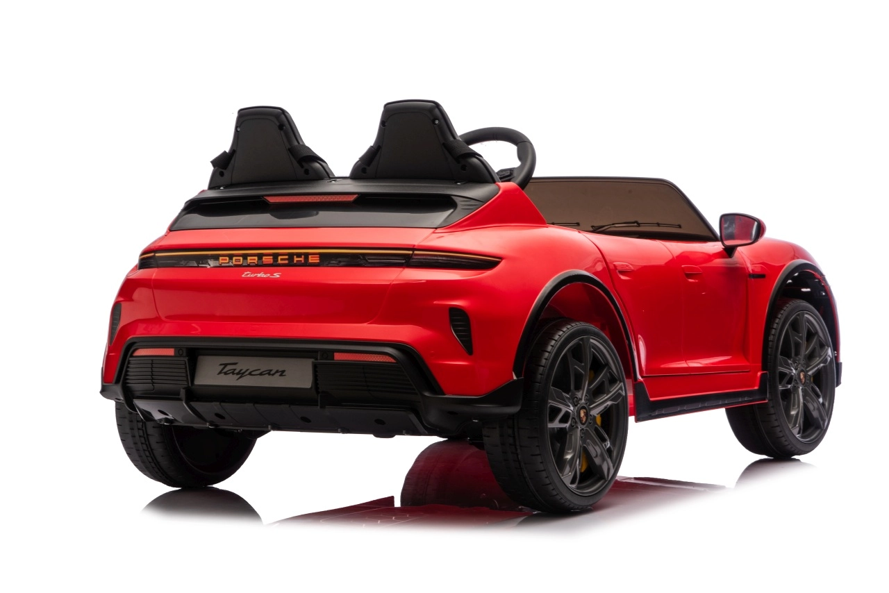 Stylové dětské elektrické autíčko PORSCHE Taycan Turbo S v červené barvě nabídne dvě sedadla z eko kůže, silné motory 2×90 W, baterii 24 V 7 Ah, měkká EVA kola a otevírací dveře. Pro bezpečí rodičů je k dispozici dálkové ovládání 2.4 GHz se STOP tlačítkem. Nechybí LED světla, plynulý rozjezd, pásy a bohatý audio panel s MP3, FM rádiem a Bluetooth.
