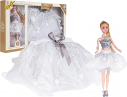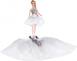 Set panenka + dětská sukně přináší sladěný vzhled pro hru i kostýmy. Panenka je oblečená do trendy topu a třpytivé tylové sukýnky, má dlouhé blonďaté vlasy, které lze česat a upravovat, a stříbrné botky. Ve stejném stylu získá i dítě vlastní nadýchanou tutu sukni s flitry a hravými bambulkami, aby se cítilo kouzelně.
