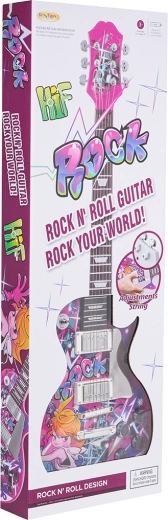 Tato atraktivní růžová elektrická kytara pro děti je navržena tak, aby vzhledem připomínala skutečný nástroj a motivovala děti k hudebním začátkům. Díky přehledným ovládacím prvkům si děti snadno zvolí hlasitost, rytmus i zvukové efekty, a mohou si pustit 8 přednastavených melodií pro doprovod.