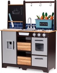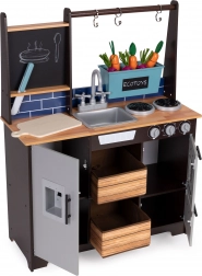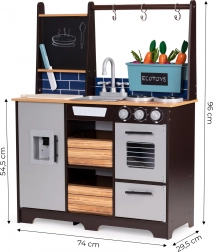 Herní kuchyňka je ideální pro rozvoj imaginace, kreativity a manuálních dovedností. Díky křídové tabuli si malí šéfkuchaři napíší menu dne, nákupní seznam nebo jména pokrmů.