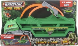 Teamsterz dino transportér je ideální volbou pro malé závodníky a fanoušky dinosaurů. Z kompaktního přenosného setu snadno vytvoříte akční trať s výklopnou smyčkou a odpalovacím launcherem, který pošle autíčko do smyčky i přes skok v kabině. Nastavitelný skok umožní měnit výšku a délku dopadu pro nekonečné herní variace.