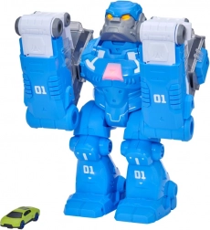 TEAMSTERZ Robo Gorilla spojuje motiv gorily a futuristického robota do jedné působivé hračky. Velké modro‑šedé tělo s výraznými oranžovými LED očima a čísly „01“ podtrhuje závodní vzhled. Průhledné panely v pažích slouží jako dráhy, po kterých můžete sledovat jízdu přiloženého autíčka.