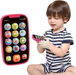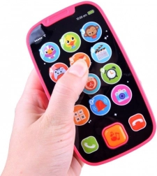 Telefon nabízí realistické funkce pro hru na volání – zelené tlačítko pro vytočení a hovor, červené pro obsazený tón, nechybí zvuky kalkulačky, fotoaparátu ani budíku. Tlačítka 1–3 přinášejí zvuky zvířátek (ptáček, kachna, opička), další klávesy spouštějí herní konzoli, poštu, filmové efekty, vánoční melodii, tlukot srdce a vyzvánění. Oranžové tlačítko s notou rozsvítí světýlko a přehraje veselé písničky.