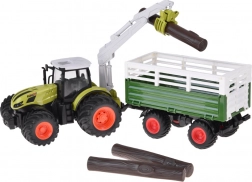 Přívěs lze odpojit, vyklápět a otevírat bočnice i zadní čelo. V balení jsou tři plastové klády připravené k převozu.