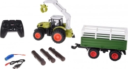 Tento detailně zpracovaný RC traktor v ikonické zelené barvě potěší velkými pneumatikami s hlubokým vzorkem pro lepší přilnavost a robustním přívěsem pro převoz nákladu. Manuálně ovládané rameno se otáčí o 360°, lze jej zvedat a spouštět a drapák se ručně otevírá a zavírá – ideální pro nakládání přiložených klád.