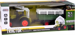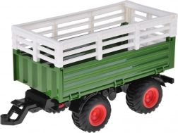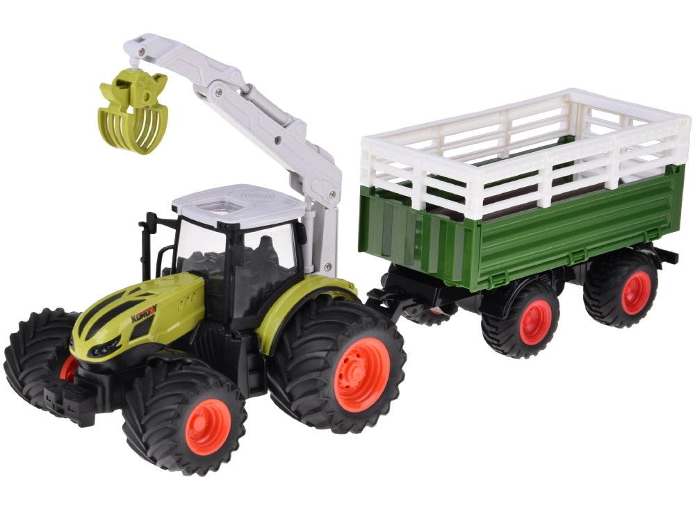 Ovladač s frekvencí 2,4 GHz zajišťuje stabilní řízení bez rušení, nechybí režim DEMO a možnost zapnutí/vypnutí světel. Přívěs je odpojitelný, má sklopnou korbu i otevírací bočnice a zadní čelo pro snadné nakládání. V balení najdete vše potřebné včetně nabíjecího akumulátoru a USB kabelu – stačí vložit baterie do ovladače a vyrazit na farmu.