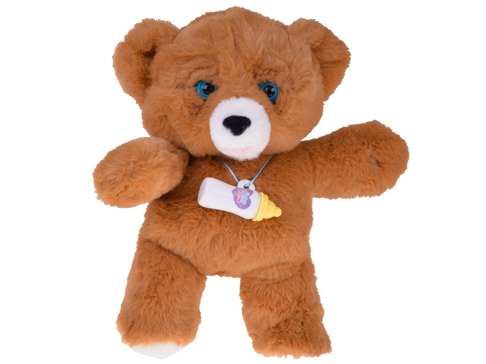 Roztomilý interaktivní medvídek je měkký mazlíček, který reaguje jako miminko. Po nakrmení lahvičkou vydává zvuky pití, směje se, pláče, bručí, posílá pusinky a zavírá i otevírá oči. Díky kompaktní velikosti si ho dítě vezme všude s sebou a užije si něžnou, rozvojovou hru plnou péče.
